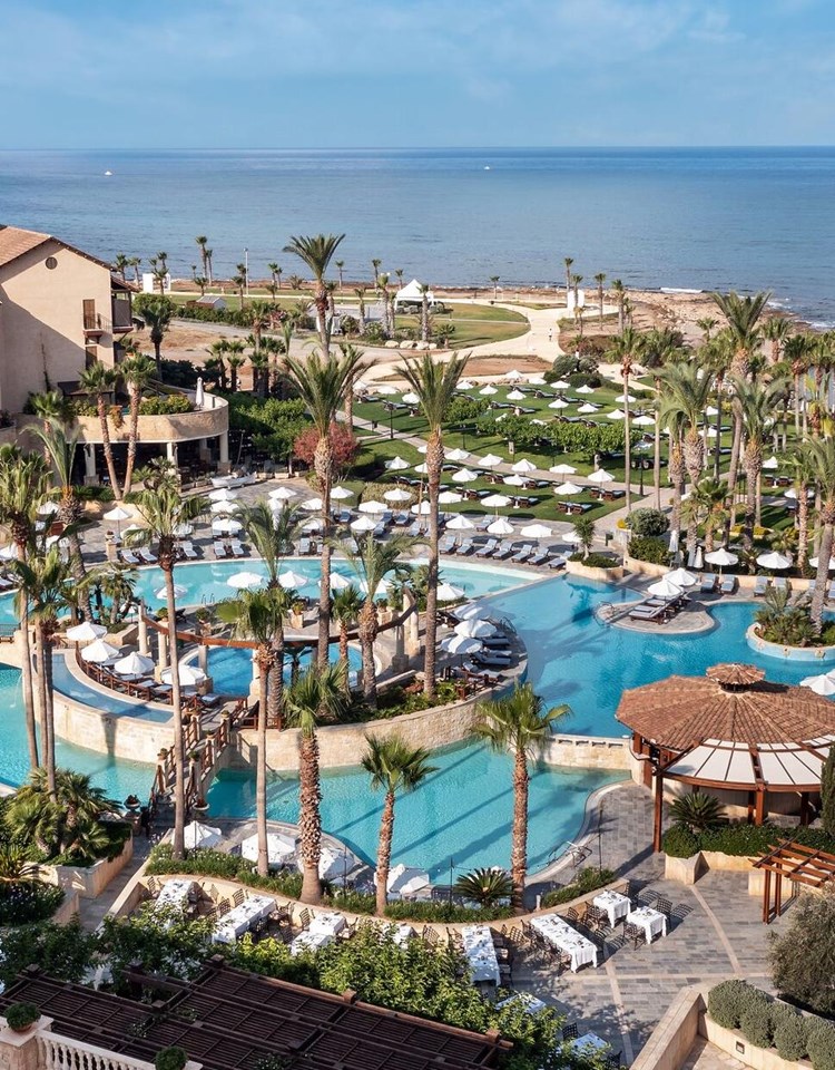 Choose from eight bars and restaurants serving Mediterranean cuisine, international options, and pan Asian menus. Each of the rooms and suites is modern and spacious, with excellent amenities and beautiful views highlighting the chic decor. There's even the opportunity to have interconnecting rooms, perfect for family holidays in Cyprus.
