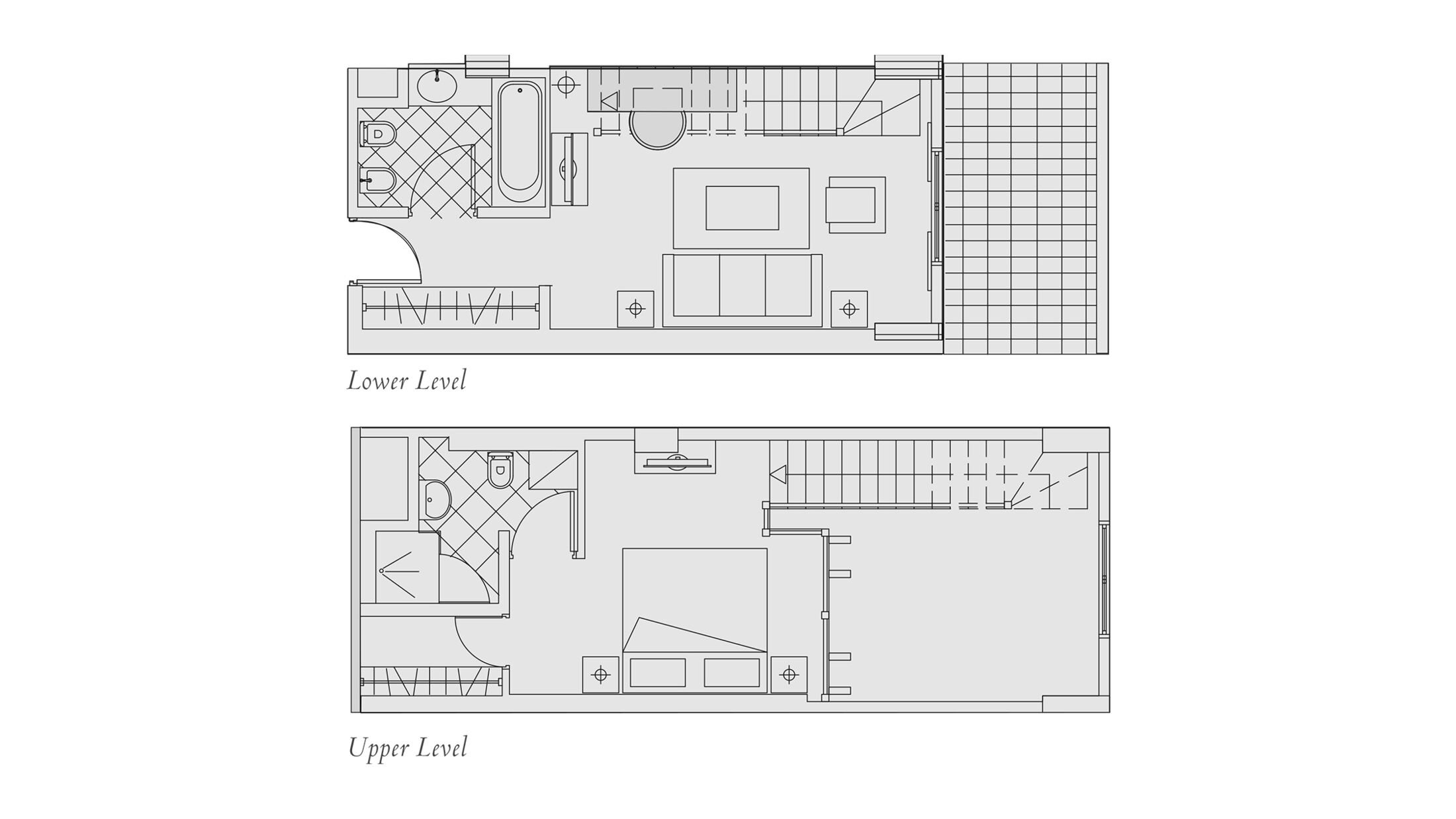 Garden Villa Suites with Private Pool are set apart from the main building and have been designed around a traditional village square. The rooms have a double height living room, mezzanine sleeping area and a private garden with a plunge pool. Suites have facilities including minibar, smart TV, tea and coffee making facilities, espresso machine, hairdryer, iPod docking station® and safe.