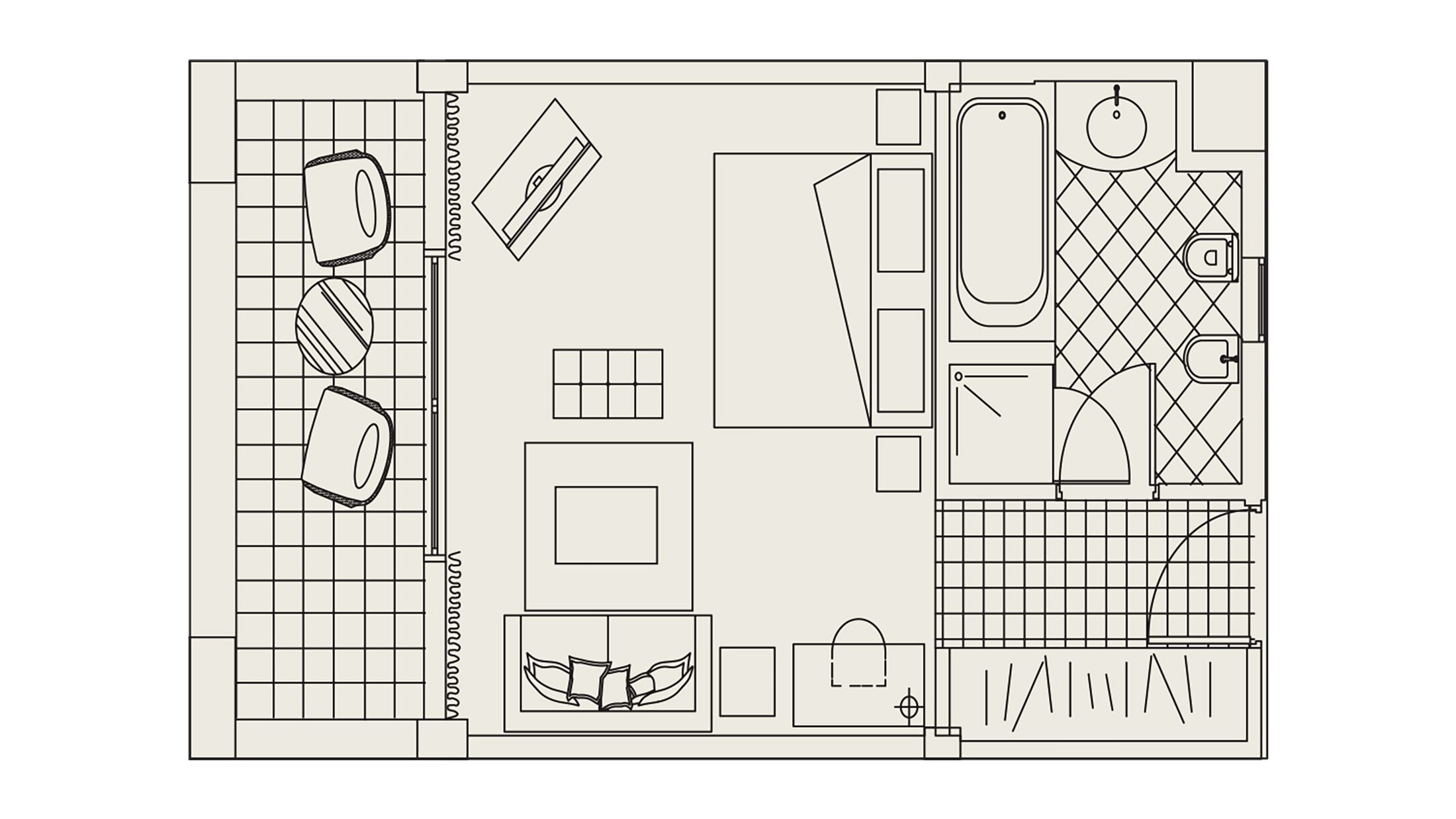 Recently renovated Deluxe Sea View Suites feature classic furnishings with a spacious living room, bedroom with double bed or twin beds and en suite bathroom and an expansive balcony.